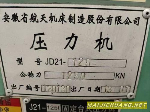 清库存处理2013年安徽航天JD21-125冲床,安装很少用